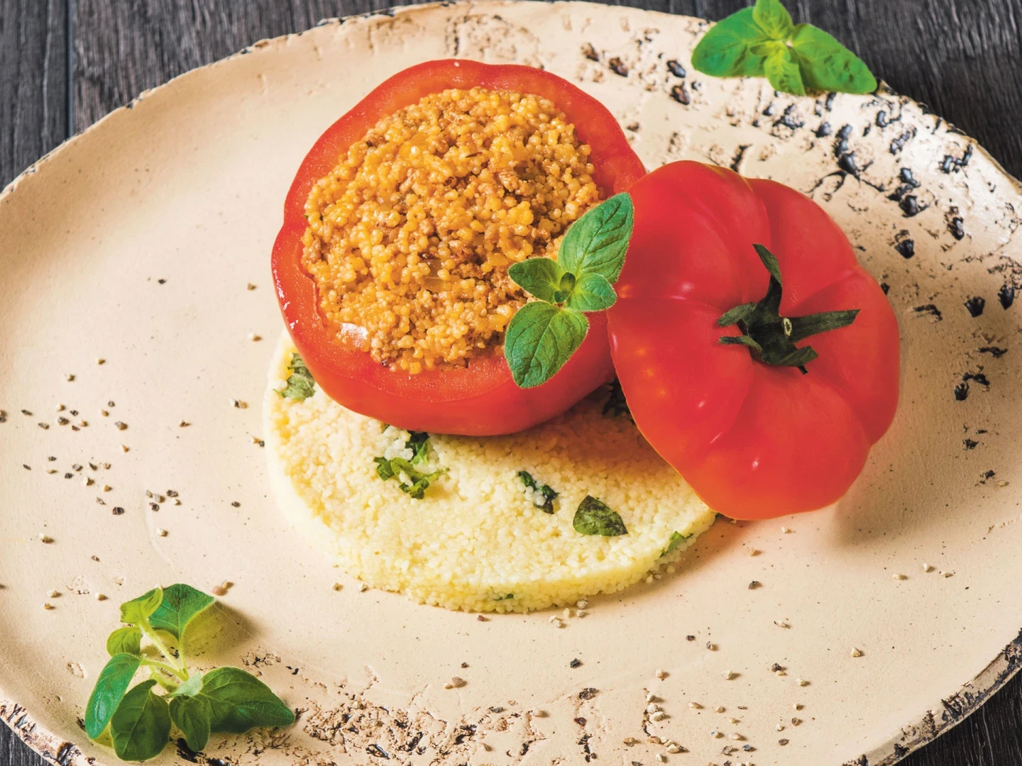 - Pomidory wypełnij farszem i przykryj górną częścią.
